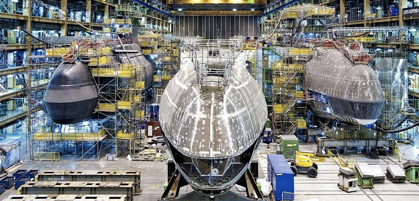 This is Devonshire Dock Hall in Barrow-in-Furness, Britain. The largest room in Europe, when it was built in 1986 for BAE Systems. 'Maggie's Farm', it was nicknamed, for the then Prime Minister. Now it is the second largest room in Europe, after Dockhalle 2 in Germany, where cruise ships are made. In Devonshire Dock Hall they build nuclear-powered submarines that can stay underwater for a year.